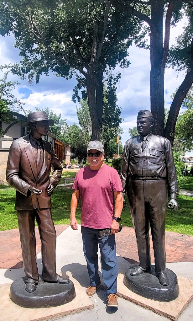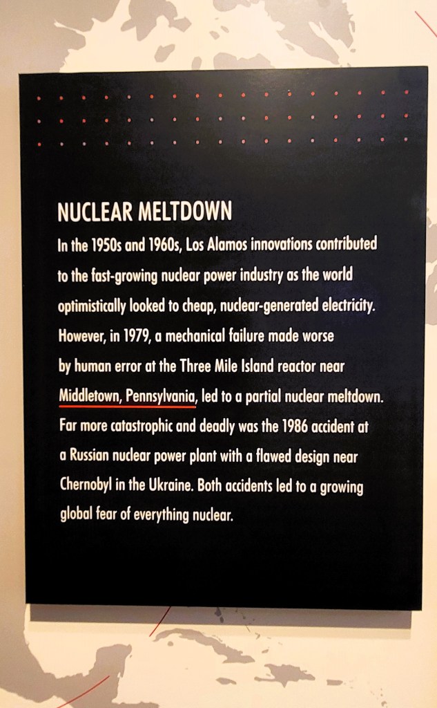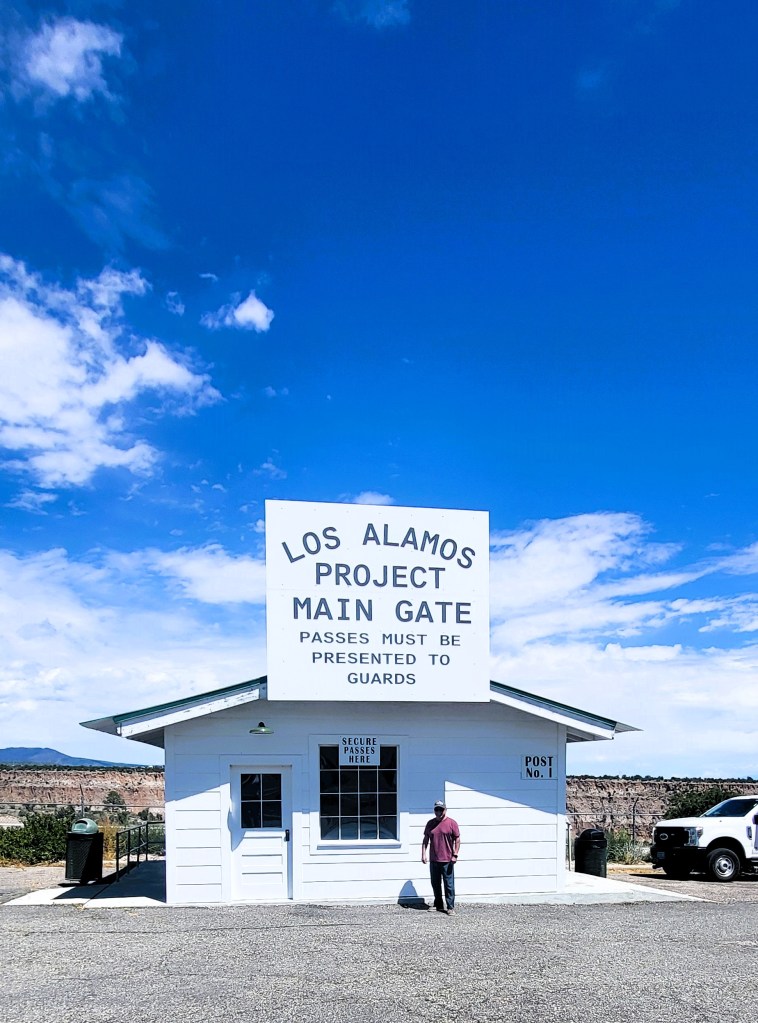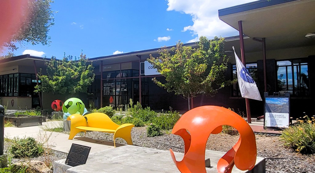 Each time we visit, we explore someplace new outside of Santa Fe. This time, because of the Oppenheimer film’s popularity, we set our sights on Los Alamos. I’d heard the buildings from the Manhattan Project era were open to the public, along with a small historical museum. Because I was under the impression that once WWII ended, everybody had left town, I imagined a dusty, quiet, isolated small place—those with a feeling that time did not pass. There is nothing further from the truth.