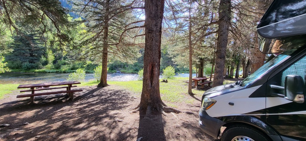 Antonito is a barren land, but just a few miles west on Highway 17, the Rio Grande National Forest unveils itself before you. Amidst that forest, by the Conejos River, is where our condo on wheels sits for a few days.