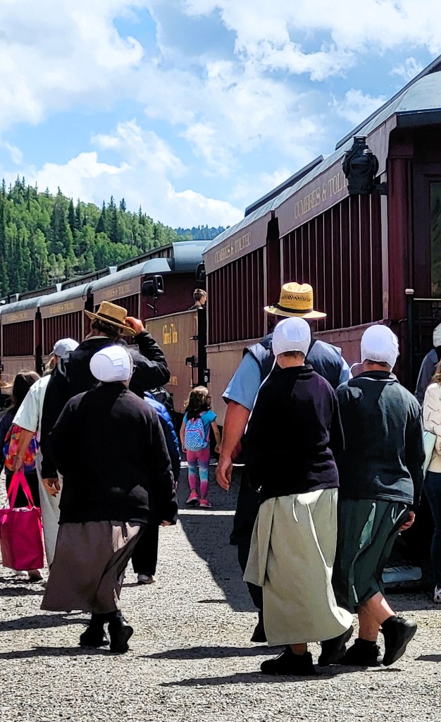 You can board The Cumbres & Toltec Scenic Railroad in two places: Antonito and Chama, NM. Chama is more the happening place with numerous visitors and RVers. The ride is one-way, and a luxury passenger bus brings you back to the depot you boarded at. For those boarding in Antonito, there is no time to shop in Chama before returning, which was disappointing.