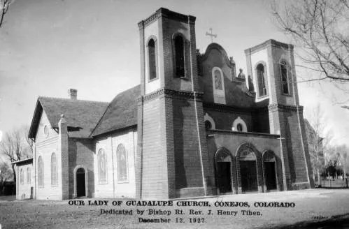 The road leading to the parish is lined with plaques honoring veterans. At the end, and before turning the corner to the parish, is a monument to veterans depicting that famous scene of a flag raising on Mount Suribachi captured by Pullitzer price winner Joe Rosenthal. The Conejos County Courthouse with a New Mexico native style building is also in that area.