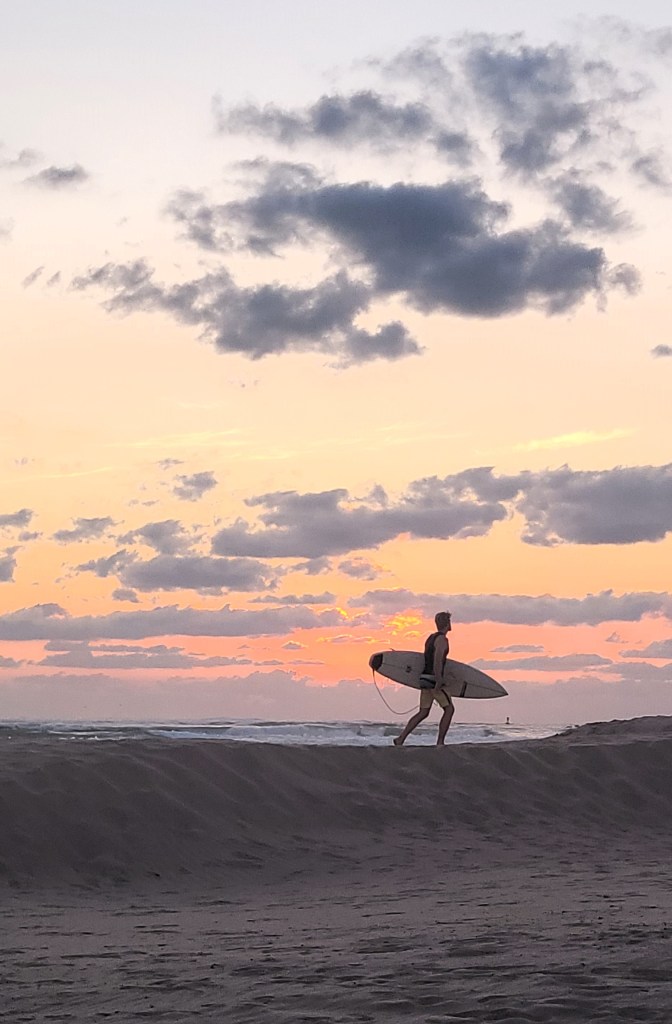 Our October pilgrimage would not be complete without morning beach walks glancing at a beautiful sunrise. I noticed something different this time around. The sunrise happened at around 7:24 am. People arrived at the park’s boardwalk slowly and quietly as if entering a church. Surfers waited for the sunrise every morning while studying the waves. Unlike watching people laughing out loud, taking many photos and selfies during the sunset hour, I noticed everybody submerged in awe as the sun came out. There was silence. Nobody was talked, and only a few took pictures. It was as if we were looking at God himself. In many ways, we were.